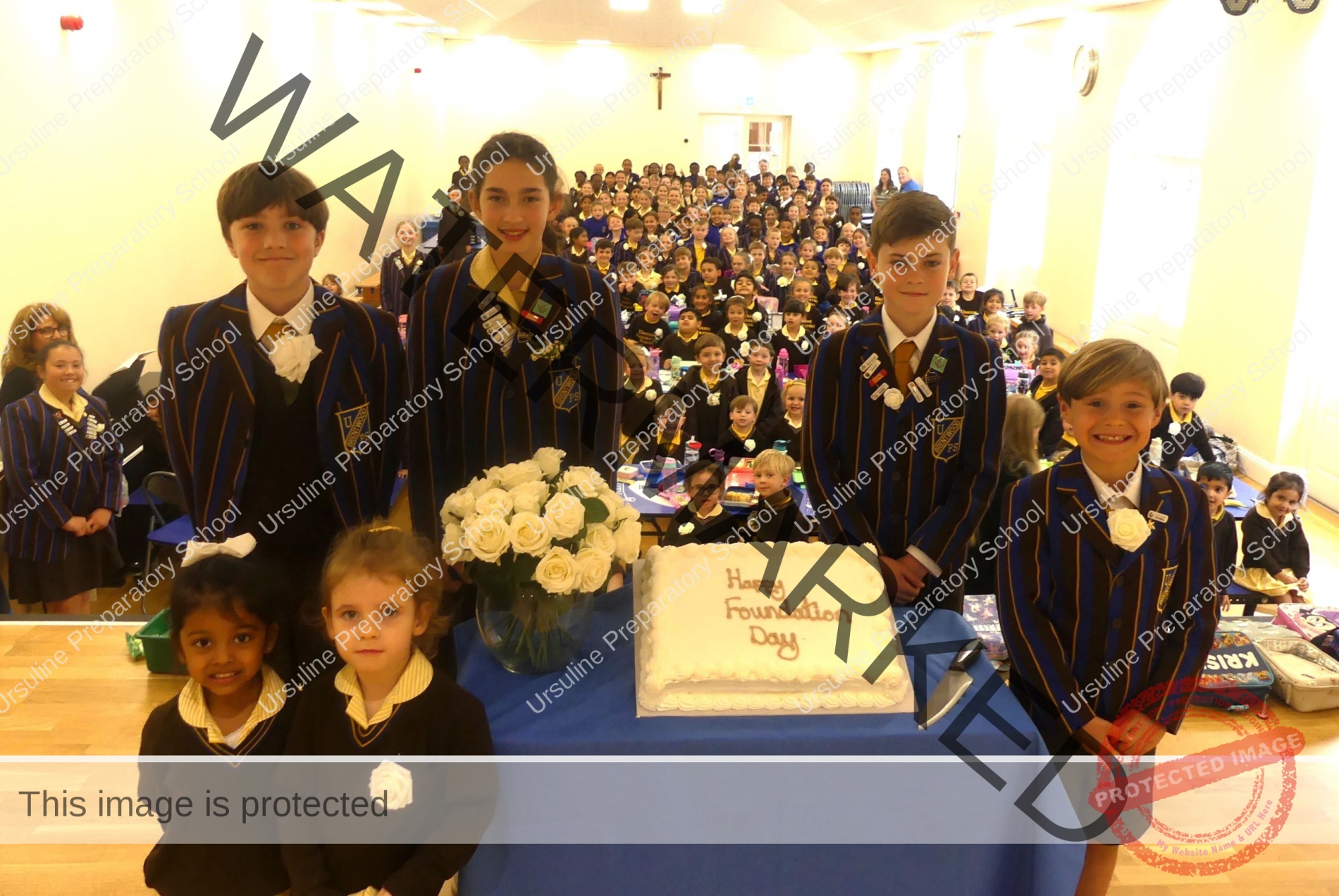 The whole school celebrated Foundation Day, which is the school’s birthday, on Friday 25th April. All children and staff wore white flowers and/or white ribbons and at lunchtime Mrs Macdonald led the school in singing happy birthday as we cut our school birthday cake. Mrs. Parker-Litjens took a special assembly to mark the occasion, sharing information about our school’s foundation, its history, successes and about Mother Clare who founded the Brentwood Ursuline Convent School and had a love of white flowers.