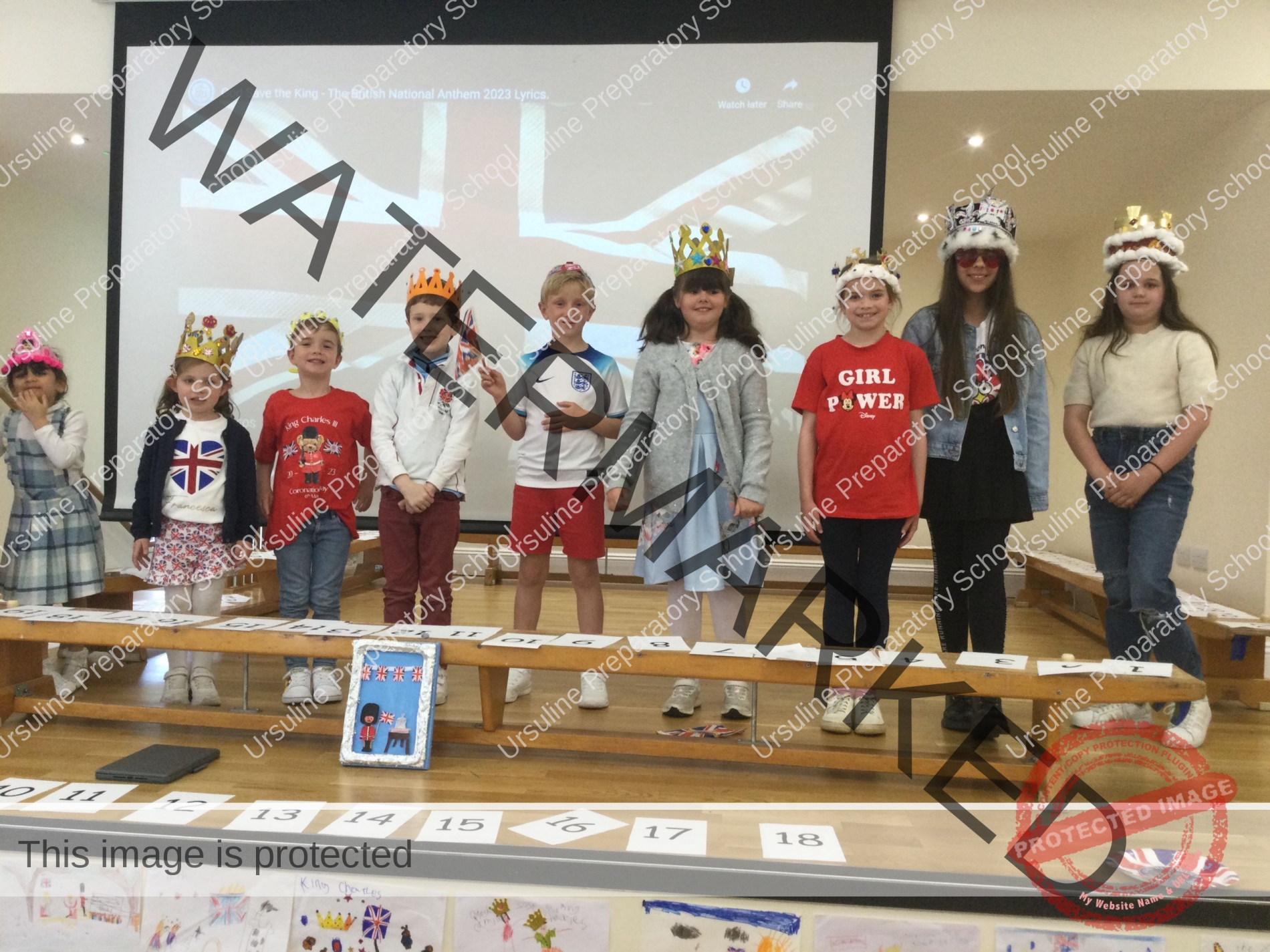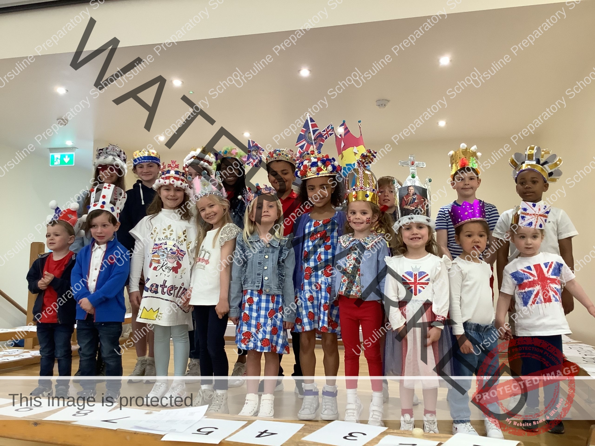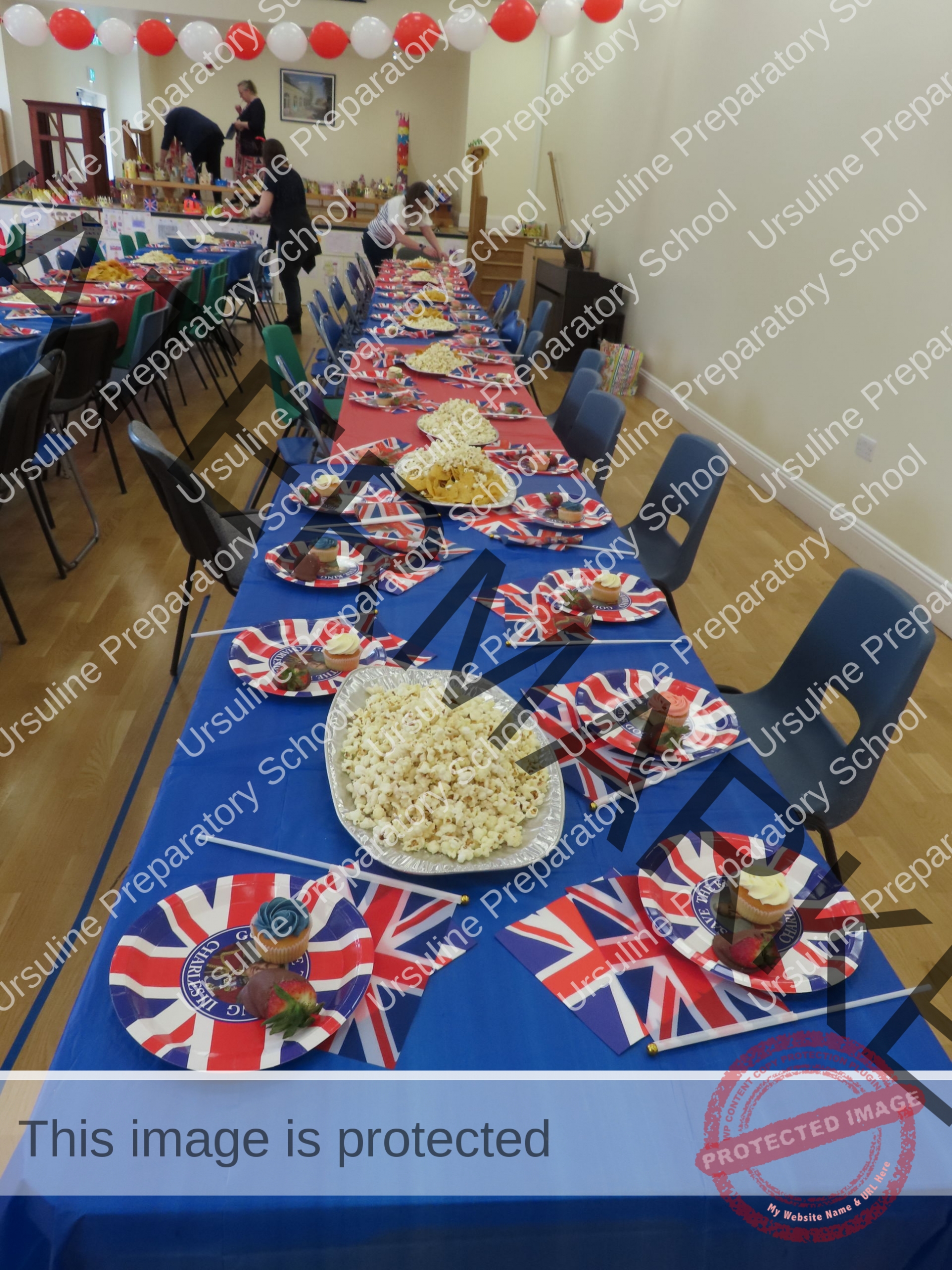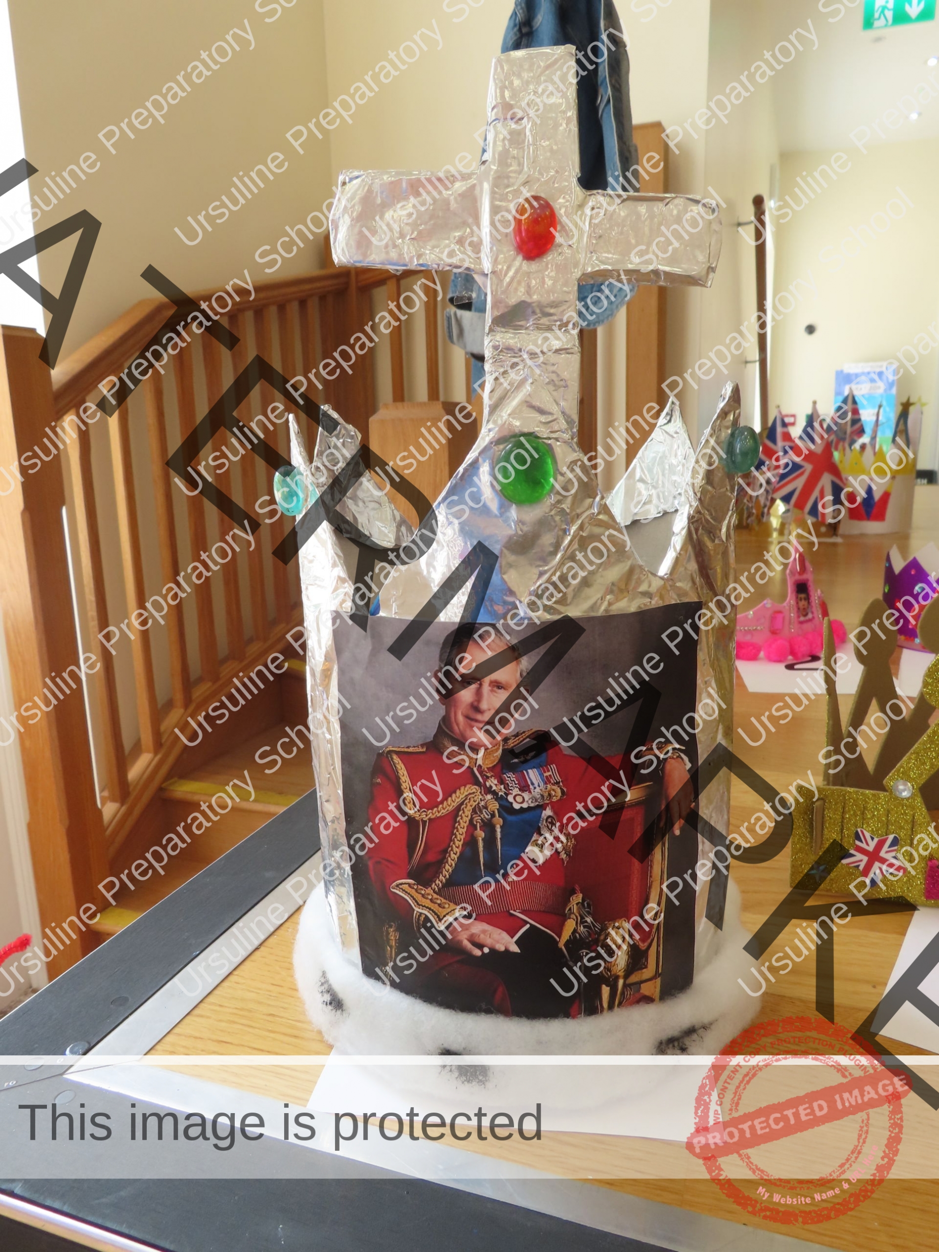 The school was ablaze with flags, bunting and balloons and the hall was transformed into a whole school dining room fit for royalty! All children (and staff) wore red, white and blue and the winners of our crown and picture competition were announced.