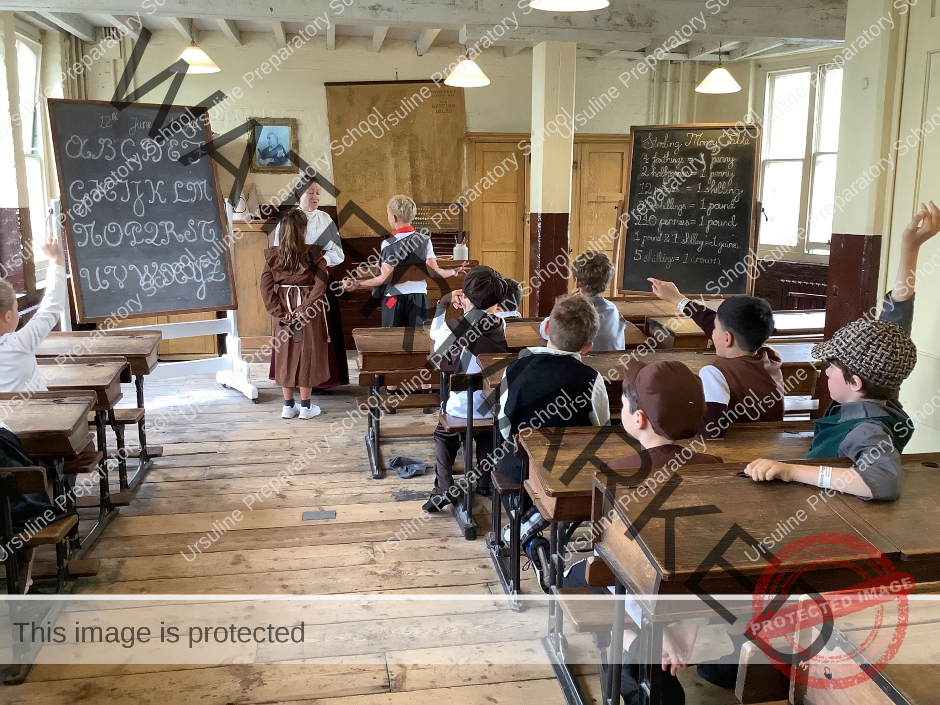 Lower One had a brilliant trip to The Ragged Old School on Wednesday. This was linked to the history work that they have been doing on The Victorians. When they arrived, they were greeted by ‘Mrs. Poole’ who took the children for an authentic lesson which would have taken place in the 1800s. She asked the children to answer arithmetic questions, practice their handwriting and draw symmetrically – all whilst being seen but not heard! Mrs. Poole also had a cane and taught them about behaviour strategies like a finger stock and a back straightener. They then took part in a Victorian home session where they learnt how a Victorian family would have lived and the roles of each family member. It was a fantastic trip and one that Lower One will definitely remember!
