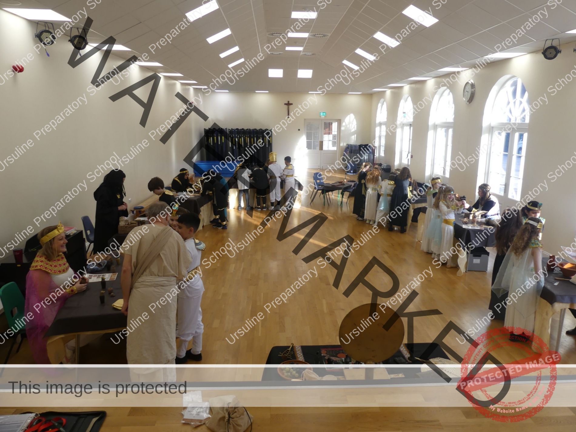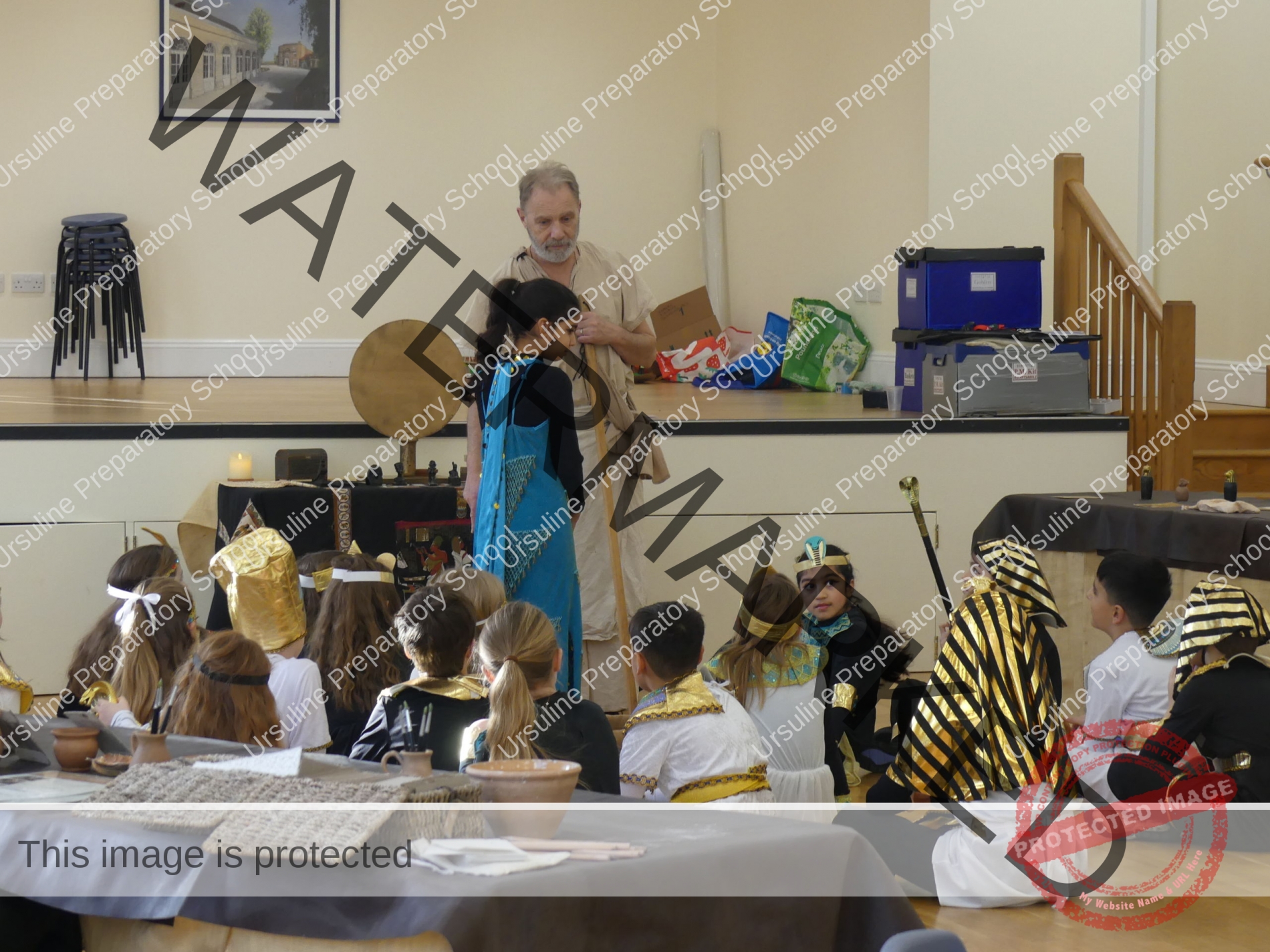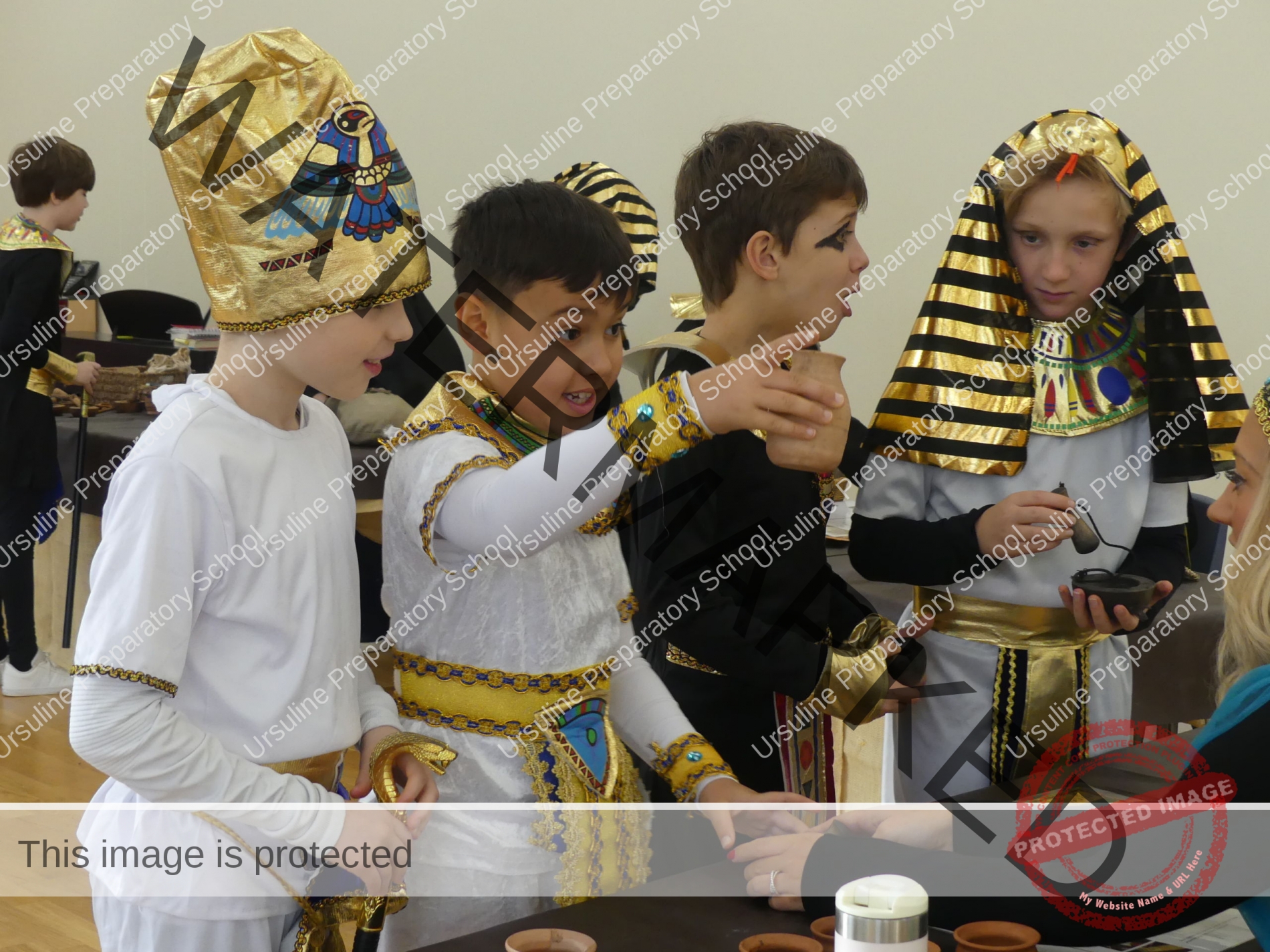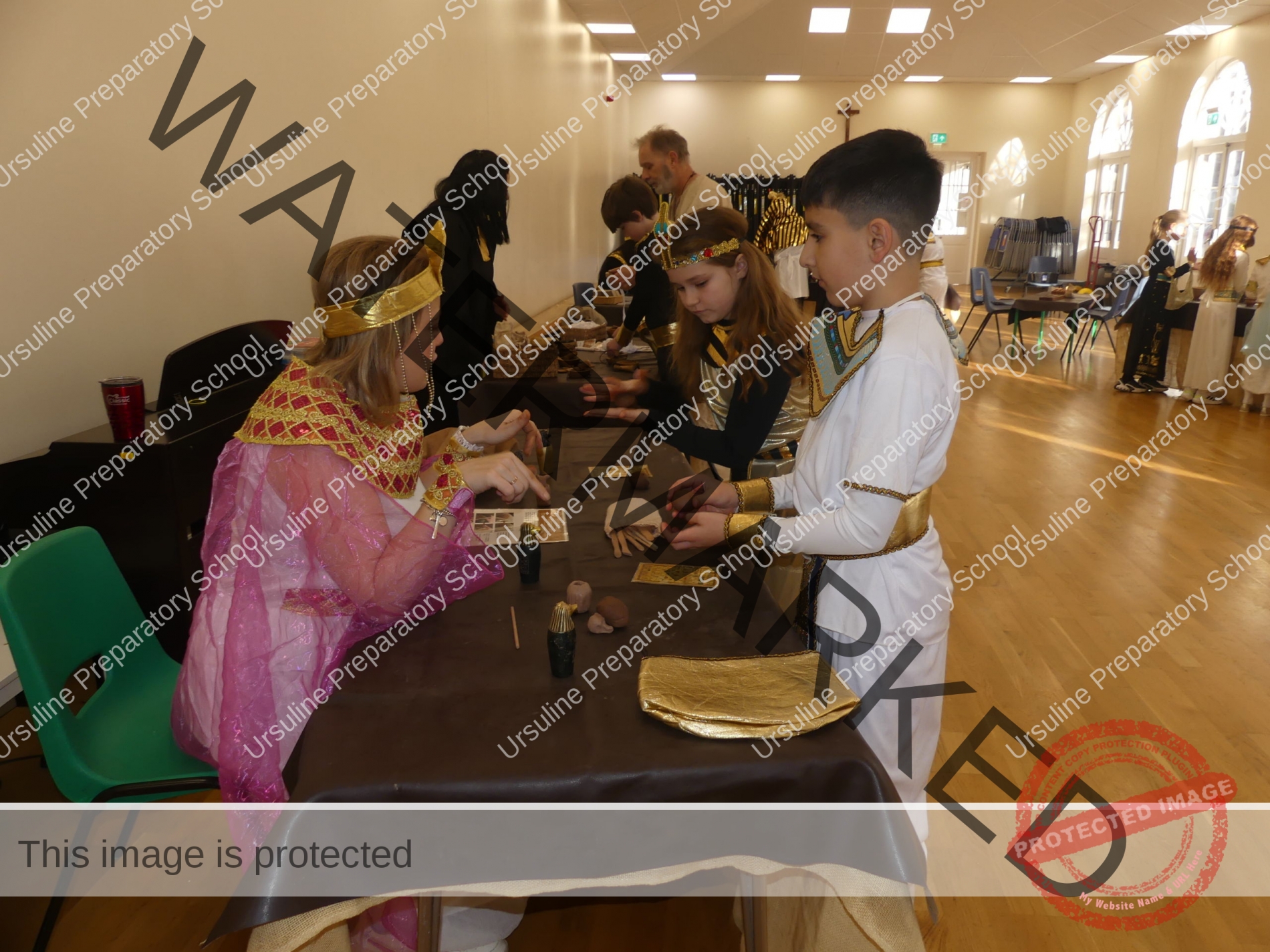 Upper One took part in a captivating workshop on Wednesday, where the children were transported back in time to Ancient Egypt! From the moment the workshop began, the children were hooked. They eagerly embraced the immersive experience as they learned about the wonders of Ancient Egypt, all while feeling like they had truly stepped into the past. The children created their own Ancient Egyptian crafts, such as foil amulets, clay canopic jars and mummification, allowing the children to get their hands dirty while making their own pieces of history. The workshop culminated in a sumptuous banquet, with dancing and enactments.